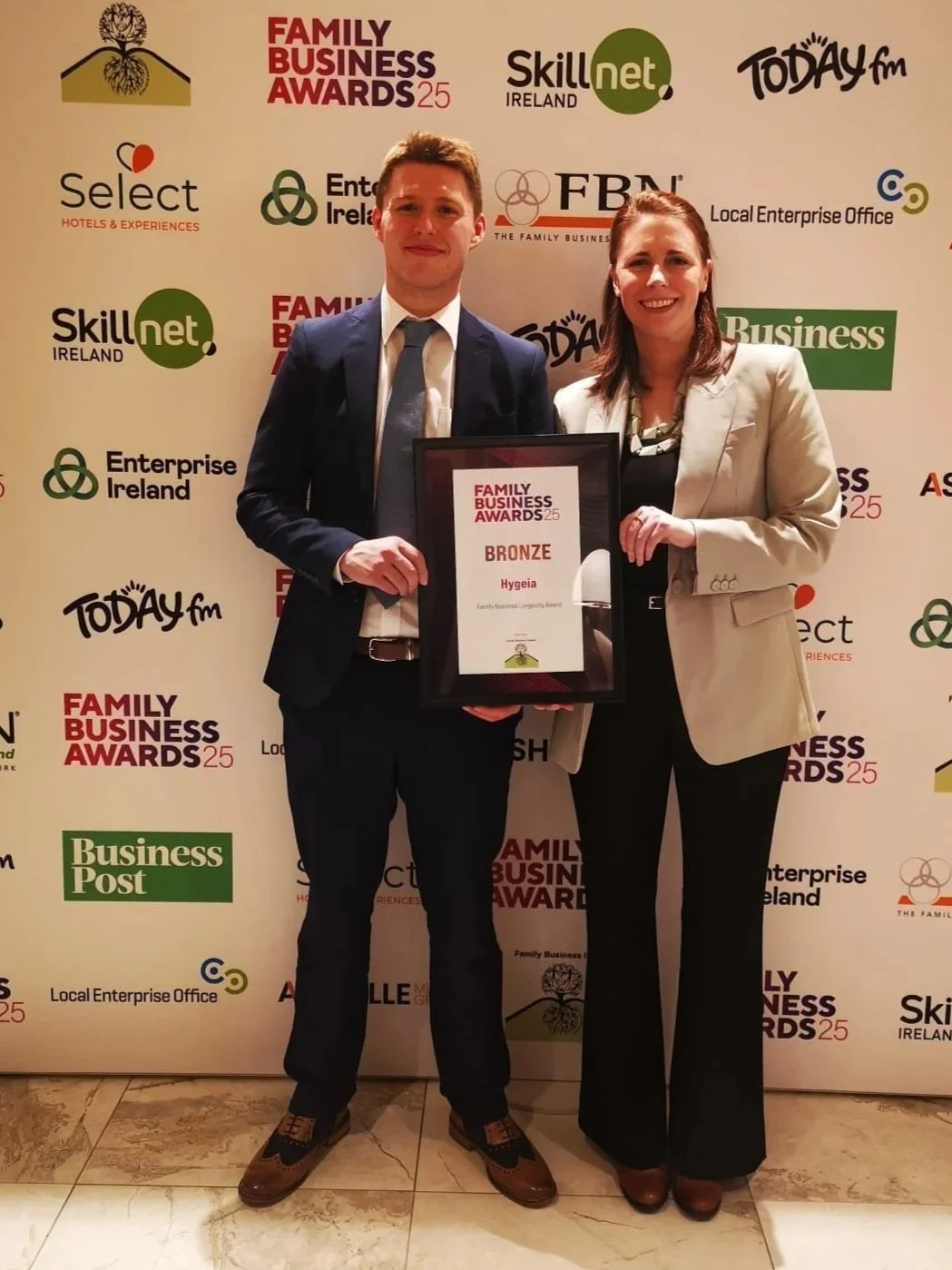 We are thrilled to share that Hygeia has been honoured with the Bronze Award for Longevity at this year’s Family Business Awards. To be recognised among so many outstanding family-run enterprises from across Ireland is a truly proud moment for us.